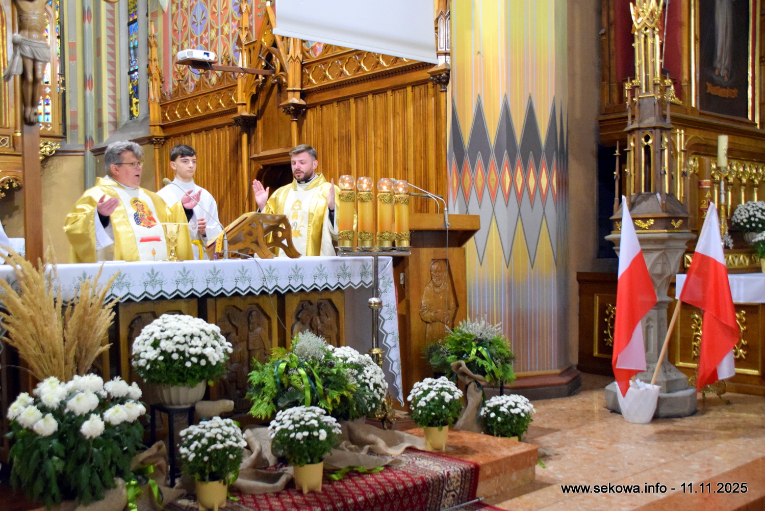 11 listopada obchodzimy Święto Niepodległości - to data-symbol odrodzenia się państwa polskiego po 123 latach niewoli, dziś w 107 rocznicę odzyskania Niepodległości, rozpoczęły się uroczystości od Mszy św. celebrowanej przez proboszcza parafii Sękowa ks. Jacka Piroga w asyście ks. wikarego Wojciecha Ożoga.