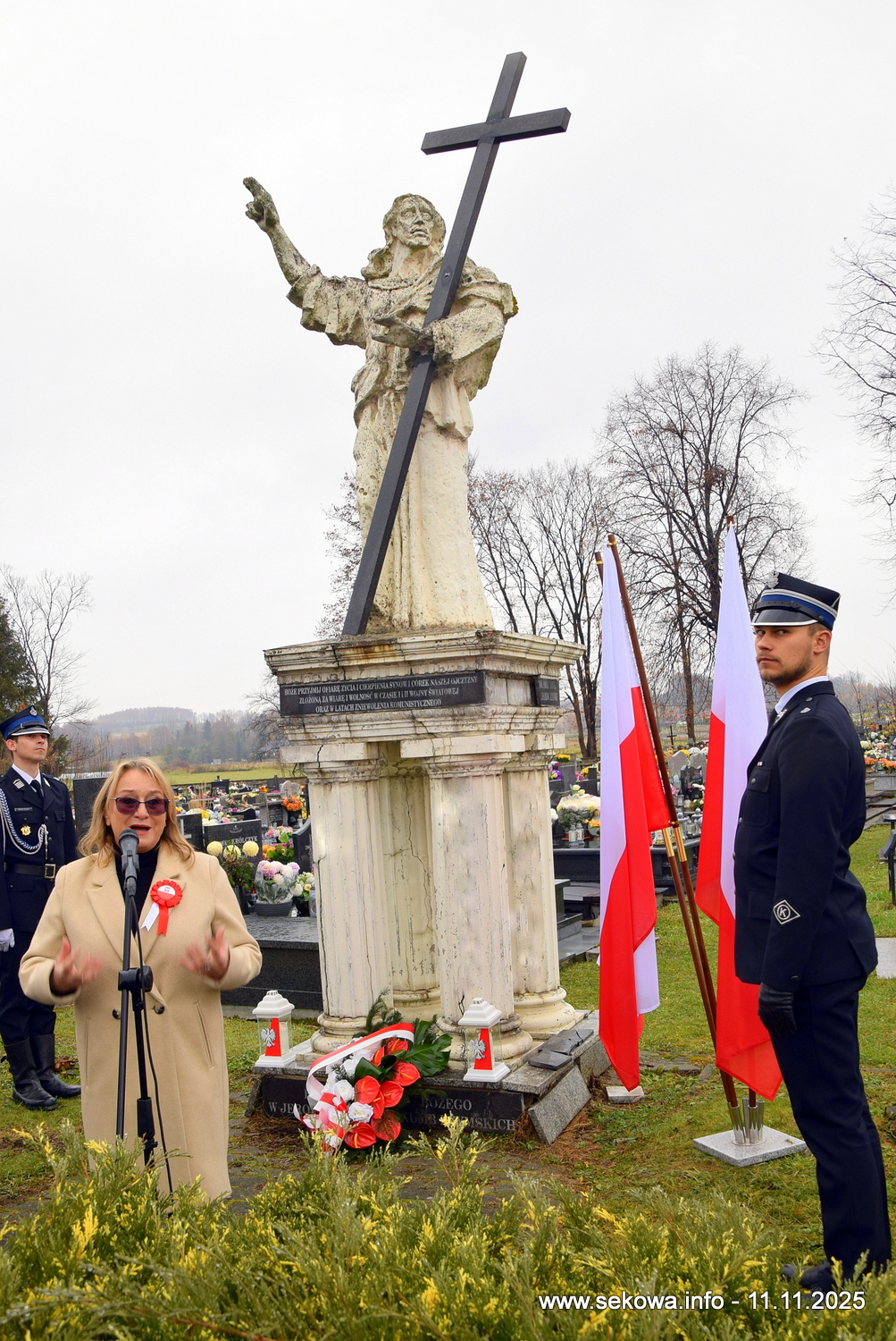 Po uroczystościach kościelnych, zebrani licznie mieszkańcy naszej gminy na czele z Panią wójt Małgorzatą Małuch i Przew. Rady Gminy Sękowa Bogusławem Moroniem, przemaszerowali na cmentarz parafialny pod Pomnik Chrystusa Zmartwychwstałego.